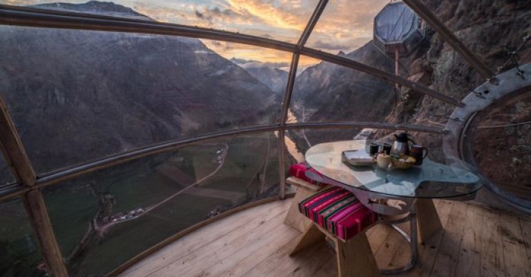 Нощувка в прозрачна капсула за спане, "залепена" към скала над Свещената долина на Перу, не е идеята на всеки за релаксиращ престой, но за любителите на адреналина е трудно да се устои - не на последно място заради невероятните гледки към околните планини и страховитите кондори, които ги обитават.